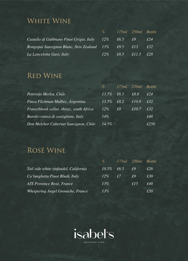 In terms of value for money, Isabel's strikes a good balance. The prices are reasonable considering the quality of the food and the overall dining experience. The wine list is thoughtfully curated, offering excellent pairings to complement the dishes.